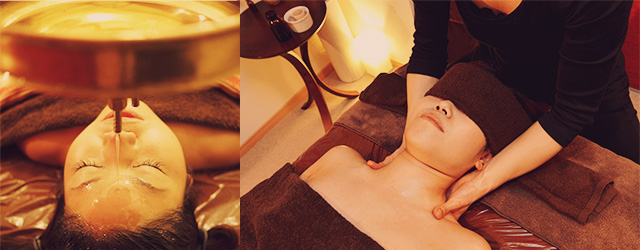 ハーブオイルを浸透させながら、頭〜首〜肩にかけてしっかりとマッサージしていき、筋肉の凝りや頭皮の張りを和らげ、ストレスや緊張状態をほぐします。