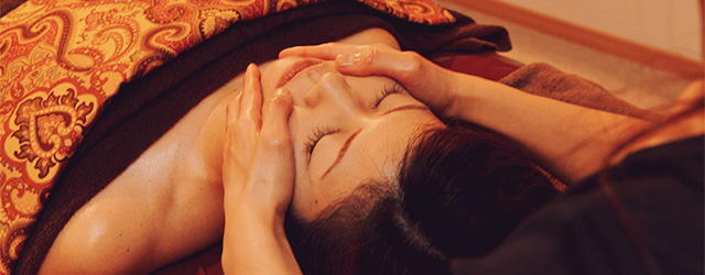頭部にはマルマ(ツボのようなもの)が集中しているので、程よい圧で刺激することで全身の感覚器官に働きかけ、五感が研ぎ澄まされ、優れたリラックス効果も得られます。