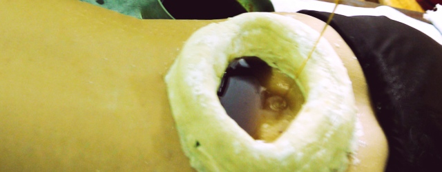 数十種類のハーブパウダーをボール状にして程よく熱したオイルと共に身体に押し当て刷り込んでいくトリートメント。